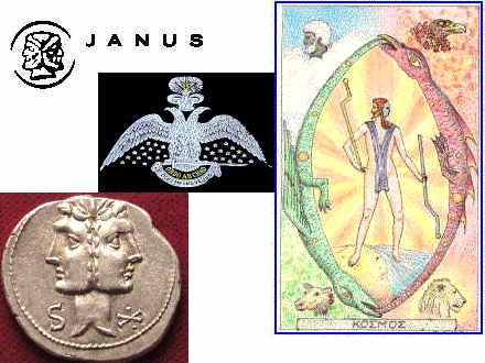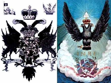 O símbolo do Rito Escocês da Maçonaria é a águia de duas cabeças com uma cabeça olhando em ambas as direções - o símbolo do Nimrod Babilônico - e mais tarde conhecido como Janus, o Deus de duas cabeças (duas faces).