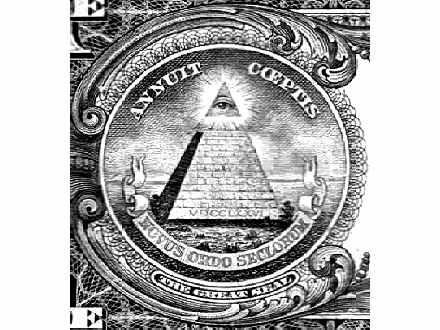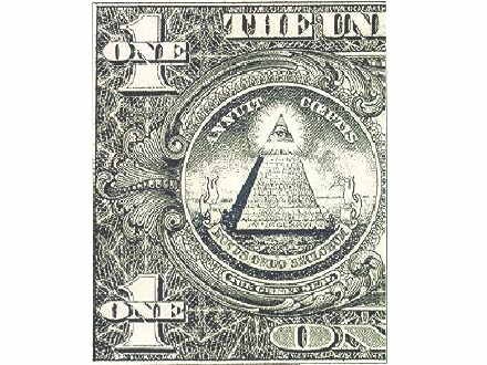 A pirâmide com o topo incompleto, ou a pirâmide e o olho que tudo vê, é descrito mais conhecidamente no verso do Grande Selo dos Estados Unidos e na nota de um dólar. O olho que tudo vê é o olho de Hórus, Lúcifer, Satanás, qualquer nome que você queira usar.
